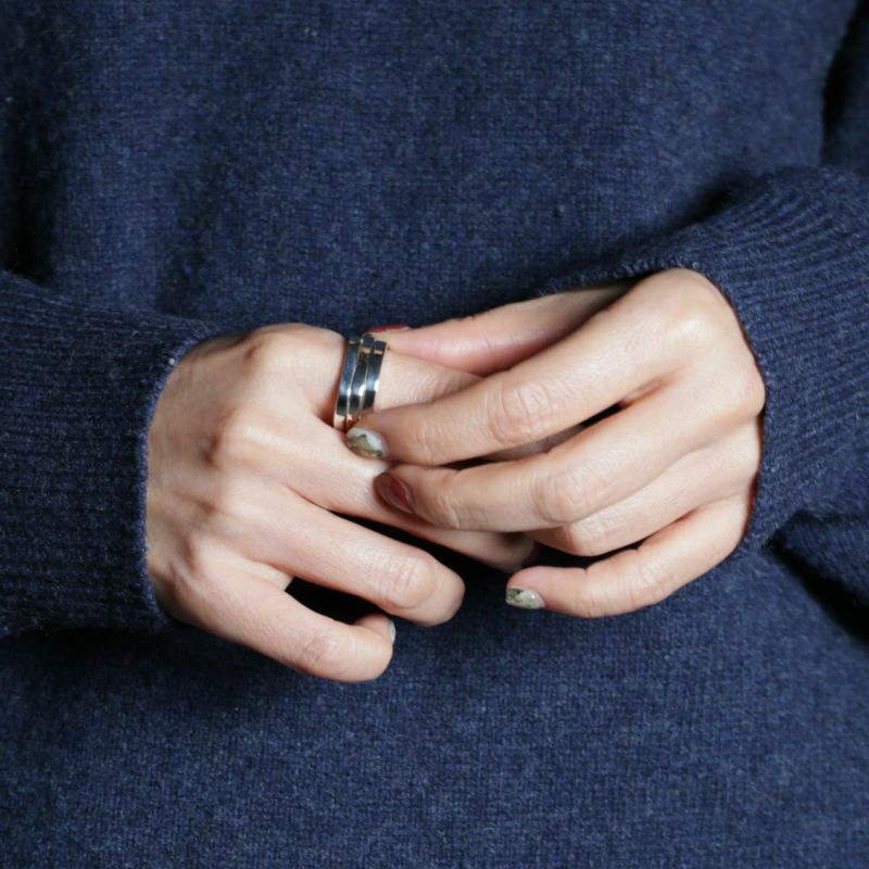 マルくない進化した指輪の形、サンカクシカクアクセサリーです。