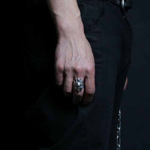 ジュエリー史において、そしてこれから先も永く愛され続けるであろう王道のモチーフ”スカル"。JAMHOMEMADEでは変わらないものの良さ、大切さを、自らの死を選択してまでやり遂げるという強い意志を込めています。ラテン語の“メメント・モリ”は、「死を憶え」などと訳されるが、逆に言えば「死を意識することで今を大切にする」ともとれる。 そのポジティブな意味合いからスカルモチーフのアクセサリーを身につける事はもはや定番となり、数多くのデザインが存在します。装飾を凝らしたスカルリングに対し、削ぎにそぎ落としたJAM HOME MADEのスカルはソリッドな表情が他とは一線を画します。均等のとれた、スムーズな表情に仕上げることで唯一無二の存在感を放っています。内側に配されたスカルは、人間の持つ「表」と「裏」の二面性を表現。