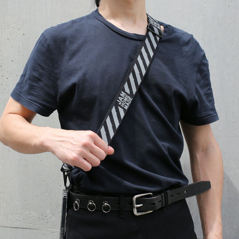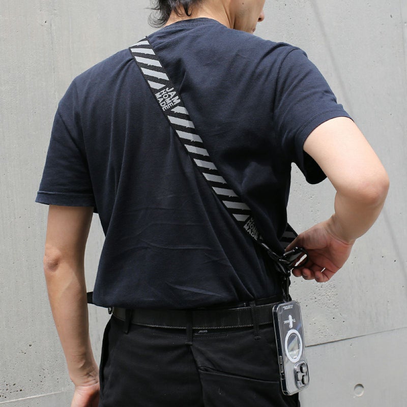 ToraTapeをモチーフにしたマルチストライプでスマホショルダーやカメラストライプ、ウォレットチェーンなど様々な用途で使用可能。オリジナルのマガダマフックを採用。警告色の黄色が紛失防止に役立つこと間違いなし。