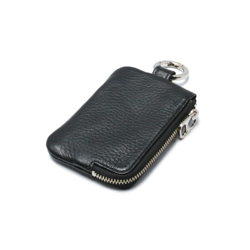 アイデア次第で自由に使えるシンプルなファスナーのフラグメントケースで、外側にカードポケットを配置、小銭を独立させるうち仕切りを設け、カードを傷からしっかり守る構造。内部にセットされたチェーンはキーホルダーとして使用できます。また、付属のチェーン、カラビナは取り外し可能です。