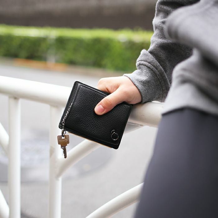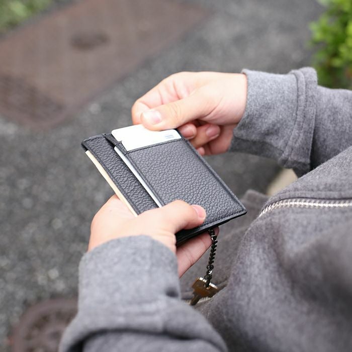 ボックス型のコインケースと大きく開く札入れで十分な収納力がありながら、名刺サイズほどミニマムでスマートなウォレットです。