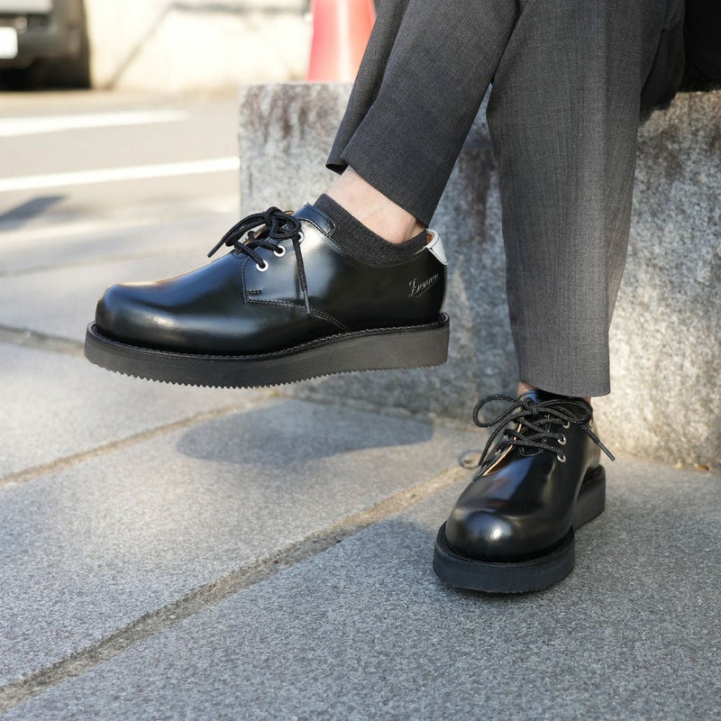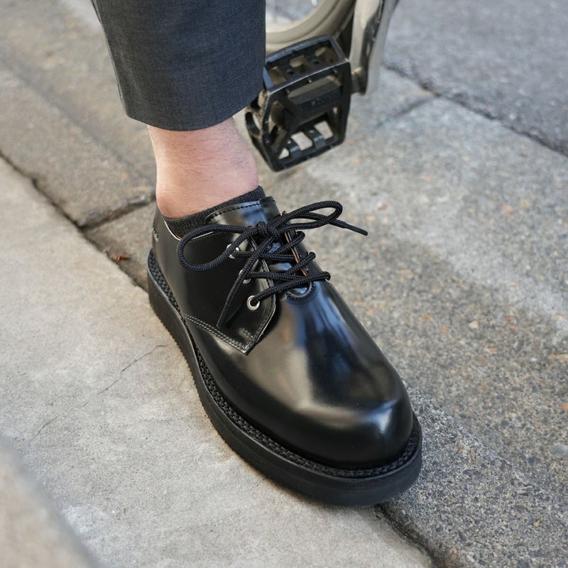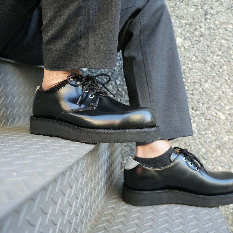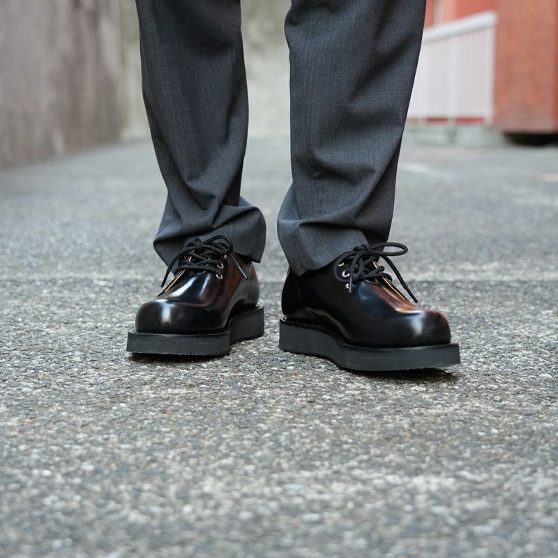 ベースに選んだのは、19世紀に起源を持つ最もベーシックな革靴、プレーントゥ(オックスフォード)。礼式の象徴でありながら、戦争、労働、日常を経てカジュアルにも溶け込んだ境界を越え続けてきた靴。