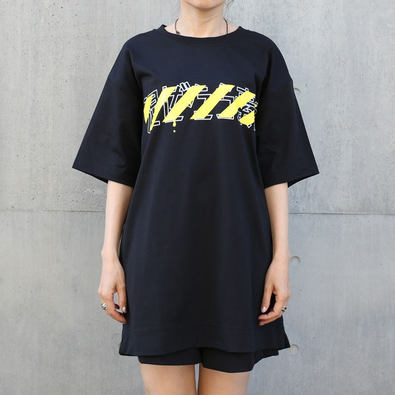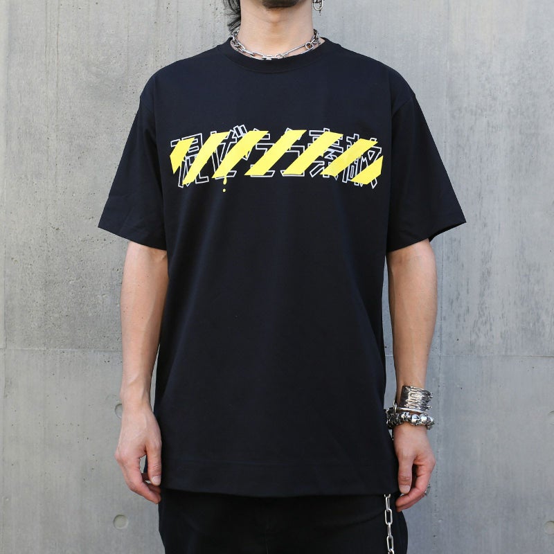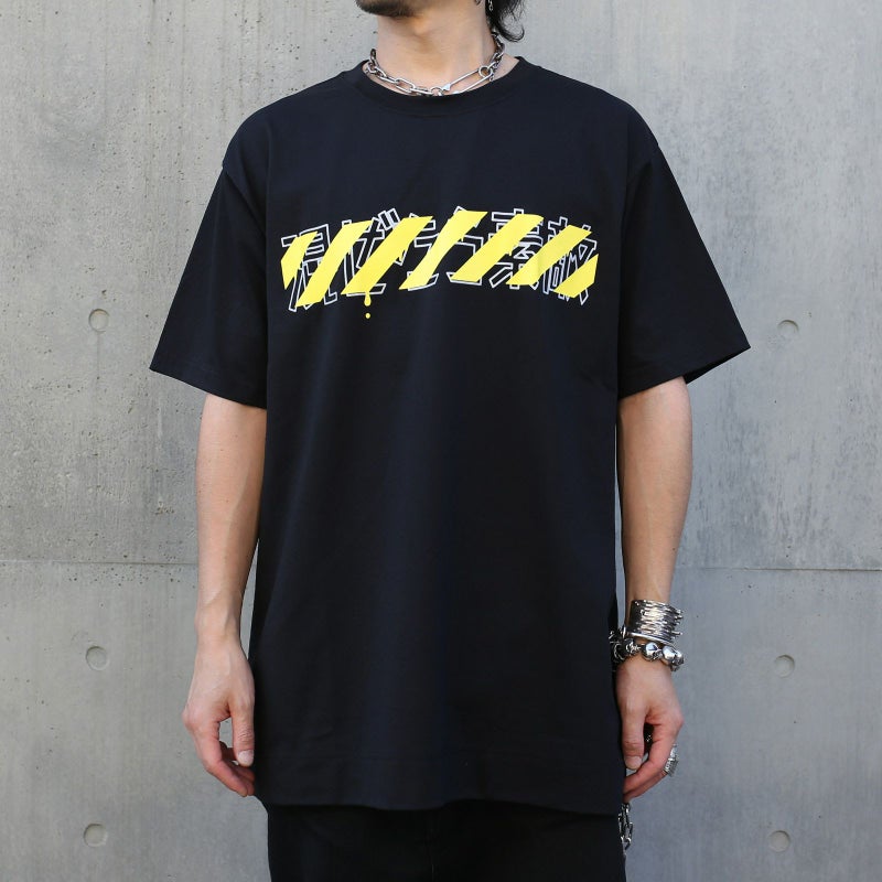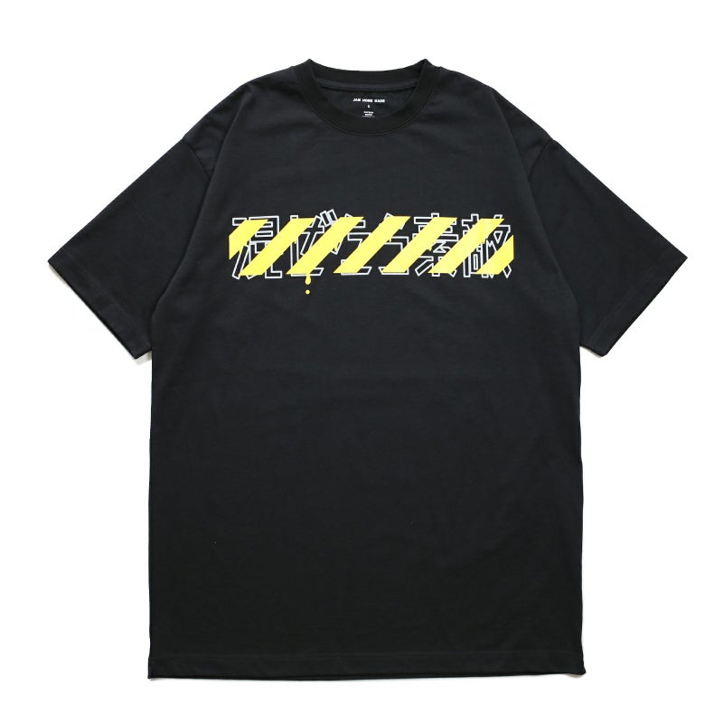 ToraTape(黄色と黒のストライプ)をポリエステルのシワになりにくさ、乾きやすさと、綿のぬくもりと通気性・吸水性の良さ、静電気の起こりにくさなど、いいとこ取りした万能な生地を使用したジャムホームメイドのオリジナルボディに採用したTシャツ。