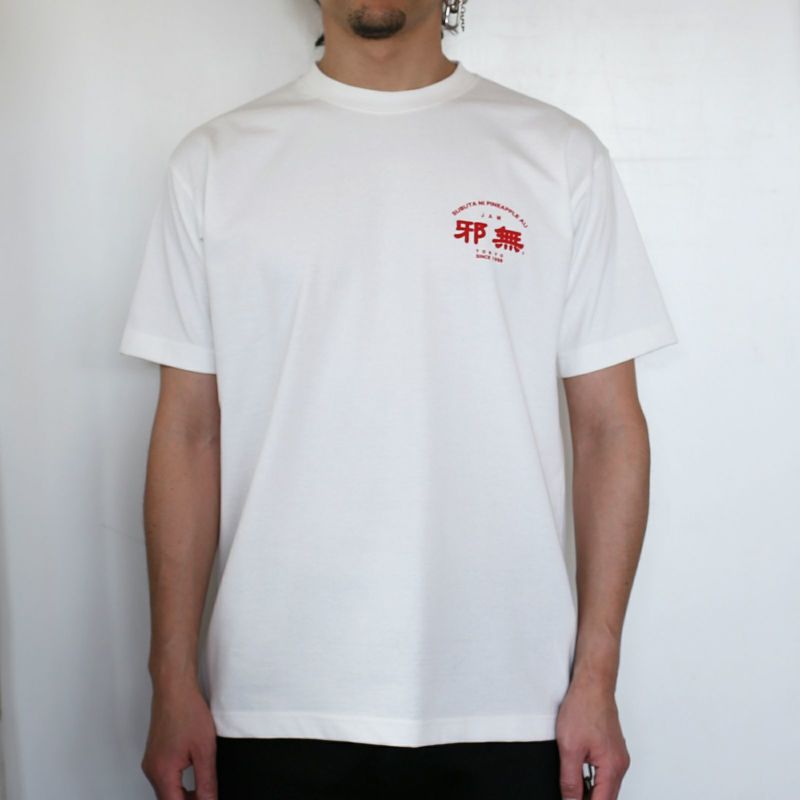 創業20年以上。ほぼすべての定食が1,000円弱というリーズナブルな価格、ボリュームはたっぷり。そしてオーダーから出てくるまでがとてもスピーディ。働く人、遊ぶ人の胃袋を満たし続けてきた、いわゆる町中華というジャンルに属す『 邪無 』という架空の街中華屋さんのスタッフTシャツ。