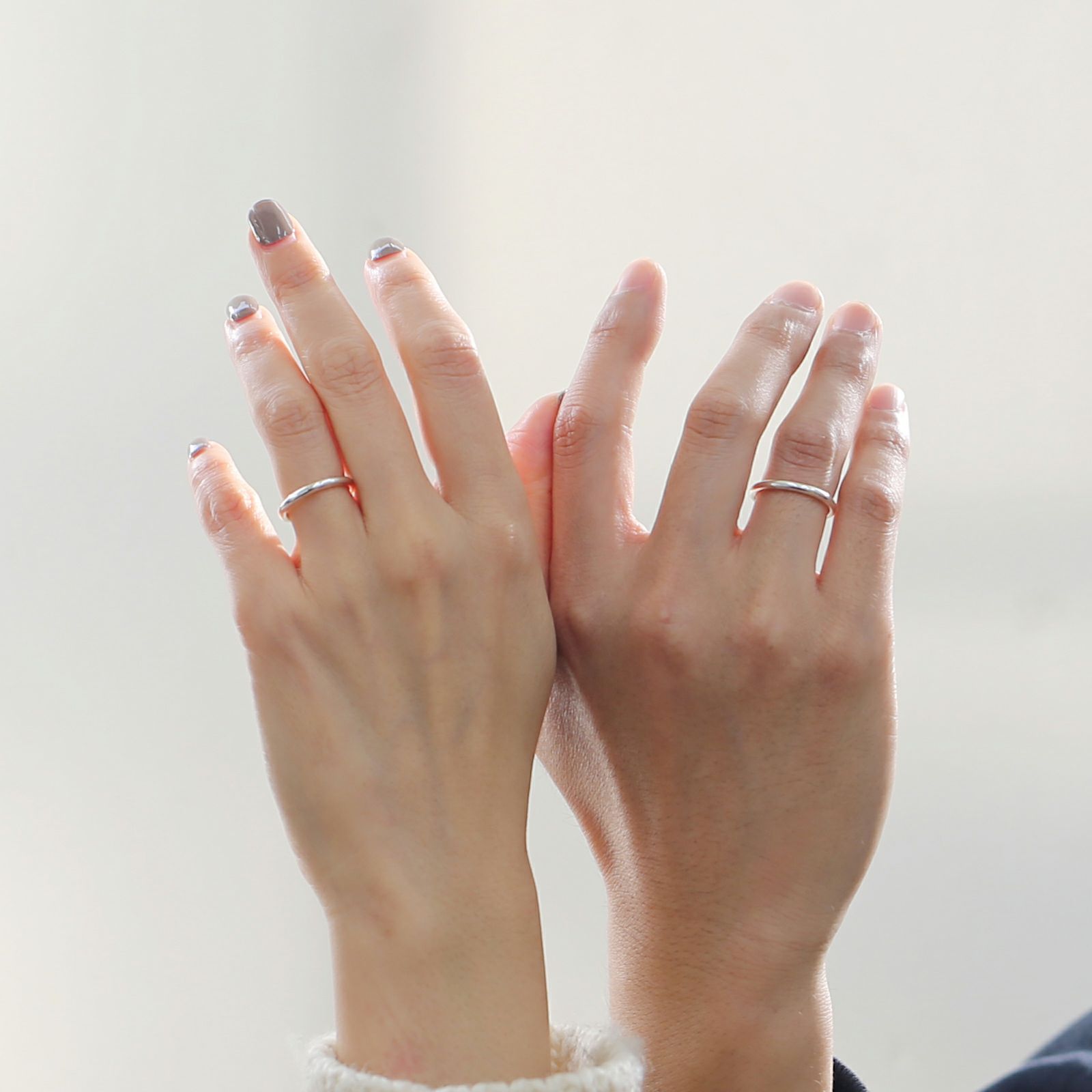 作ったときにできた叩き跡や、日々の生活の中でともに歩んでまとった傷跡やゆがみも、忘れられない思い出の時間としてそのまま刻まれる特別な結婚指輪。