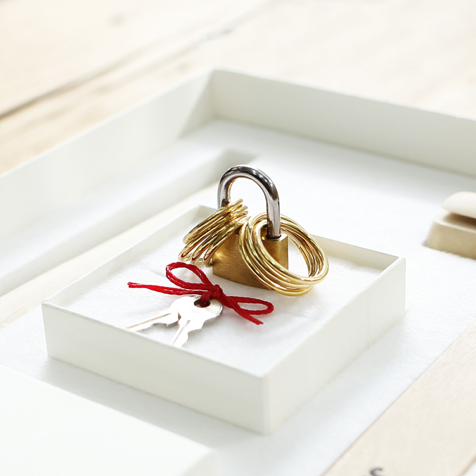 付属の赤い糸を付ければ「名もなき指輪®」の完成です。『名もなき指輪』のオプション 『世界に一つだけの指輪』