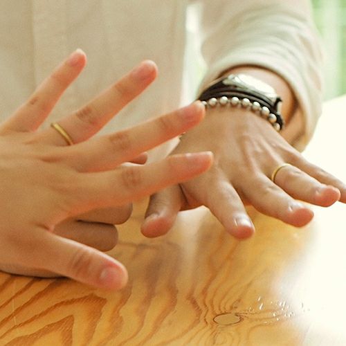 2人の気持ちをリングに込めて一緒に作った時にできた叩き跡やへこみ、日常でつく小さな傷も全てがデザインになります。楽しい時間も、そうでない時間も宝物。一つとして同じモノが存在しない、2人だけの「ペアリング」が誕生します。