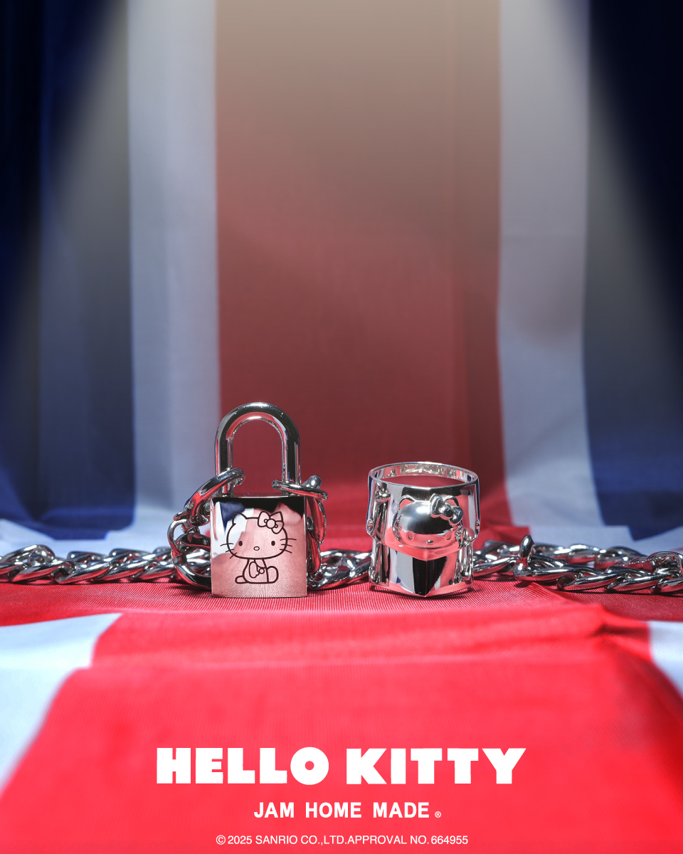 本作でも、HELLO KITTYのKawaiiと、PUNKの精神を重ね合わせ、指輪とネックレスというかたちに落とし込みました。
